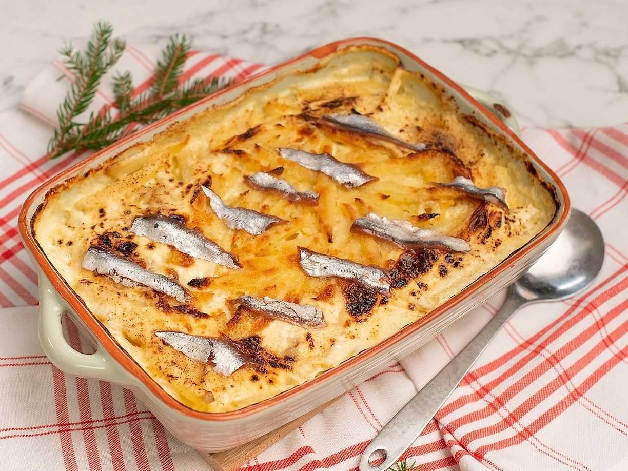 En riktig svensk pärla: krämig potatis, fin sälta från ansjovis och den där gräddiga, doftande värmen som gör att man alltid vill ta en portion till. En rätt som bjuder på ren komfort i varje sked.